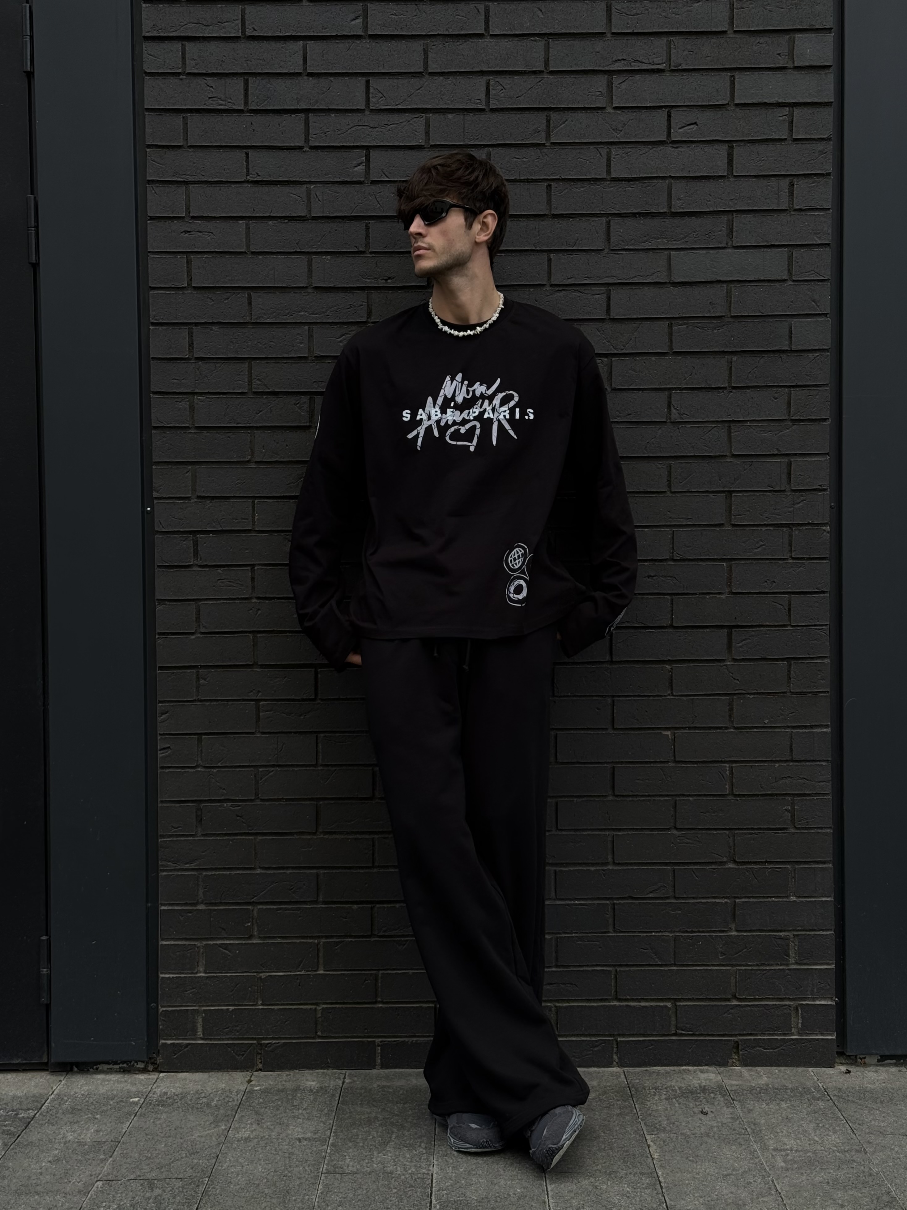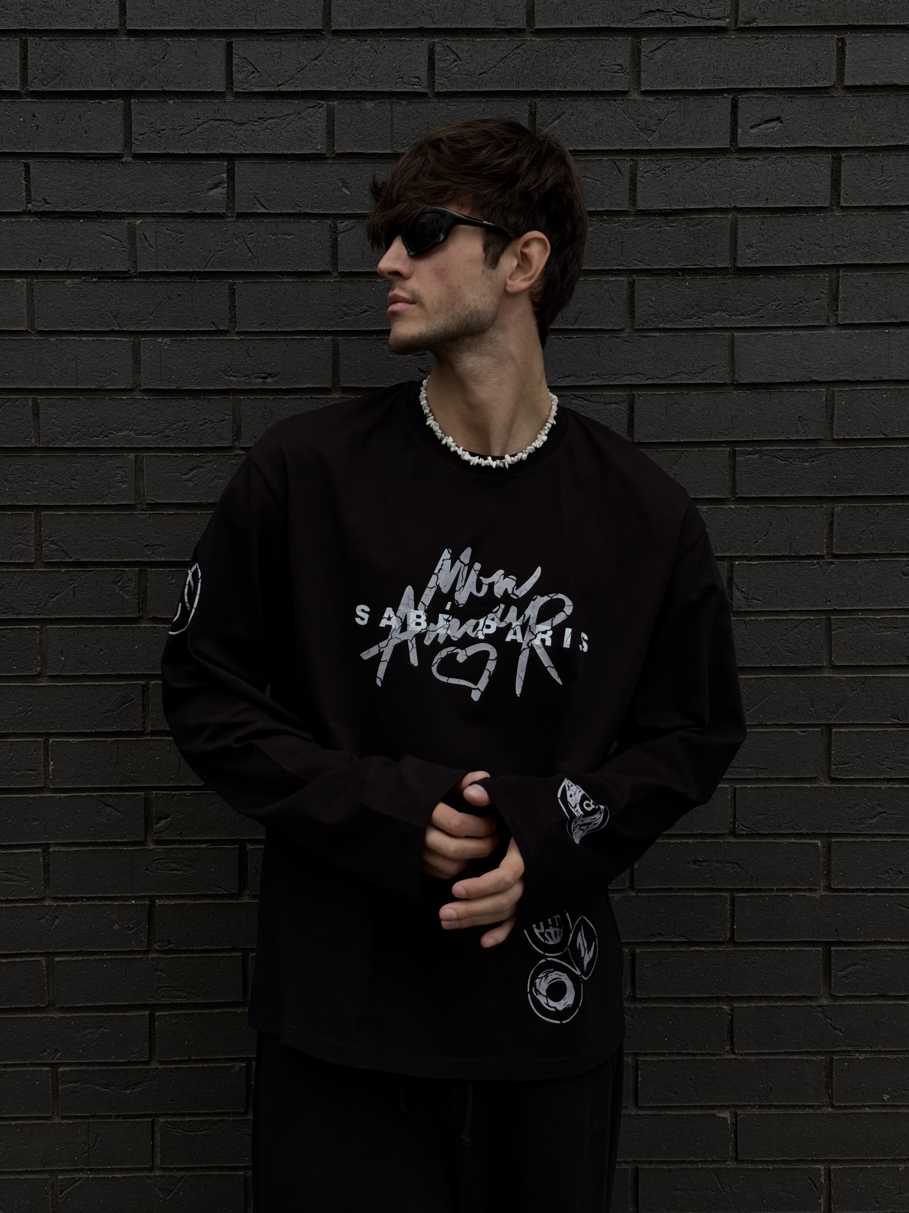 Sabe Mon Amour Black Long Sleeve - лонгслив с длинными рукавами прямого кроя из плотного хлопка.