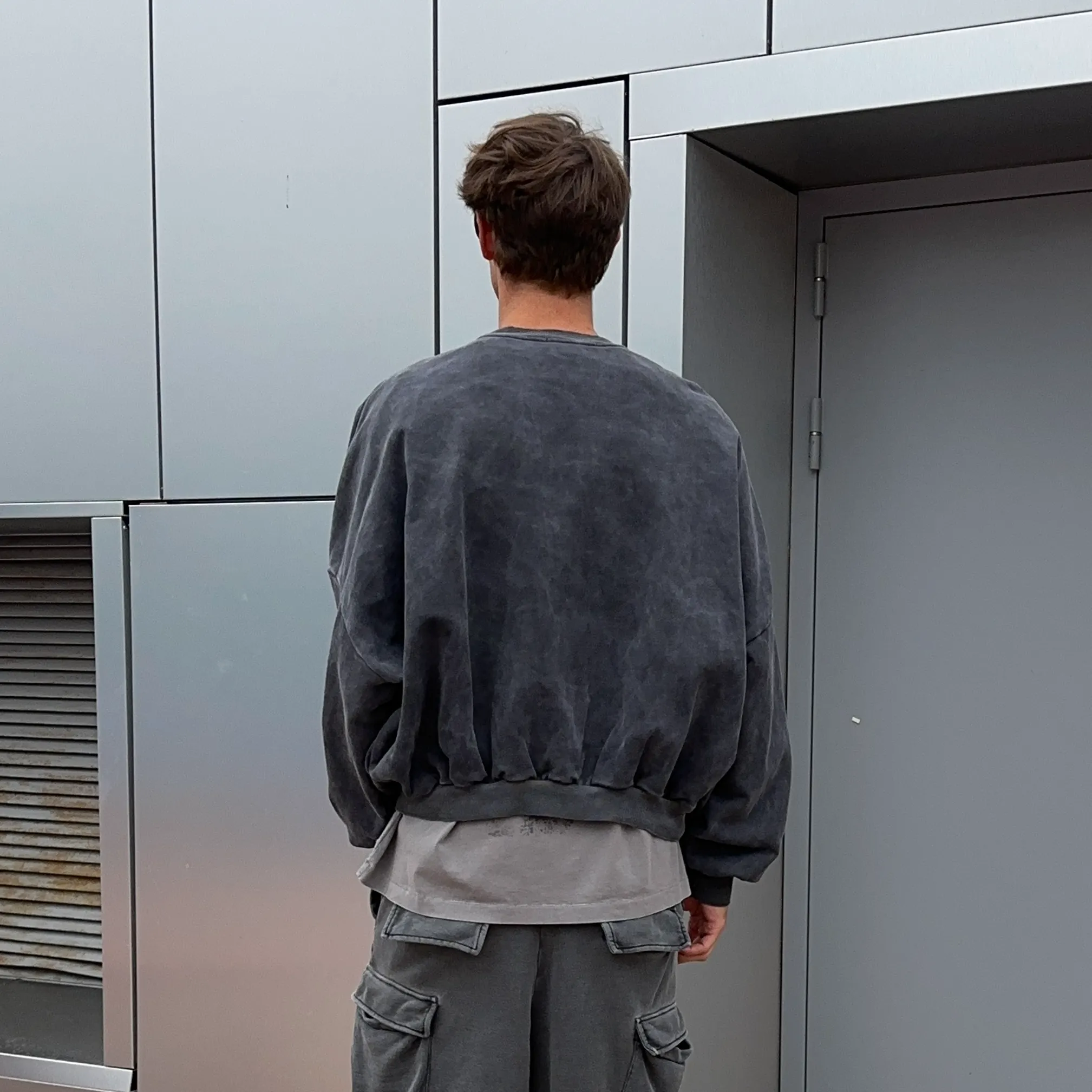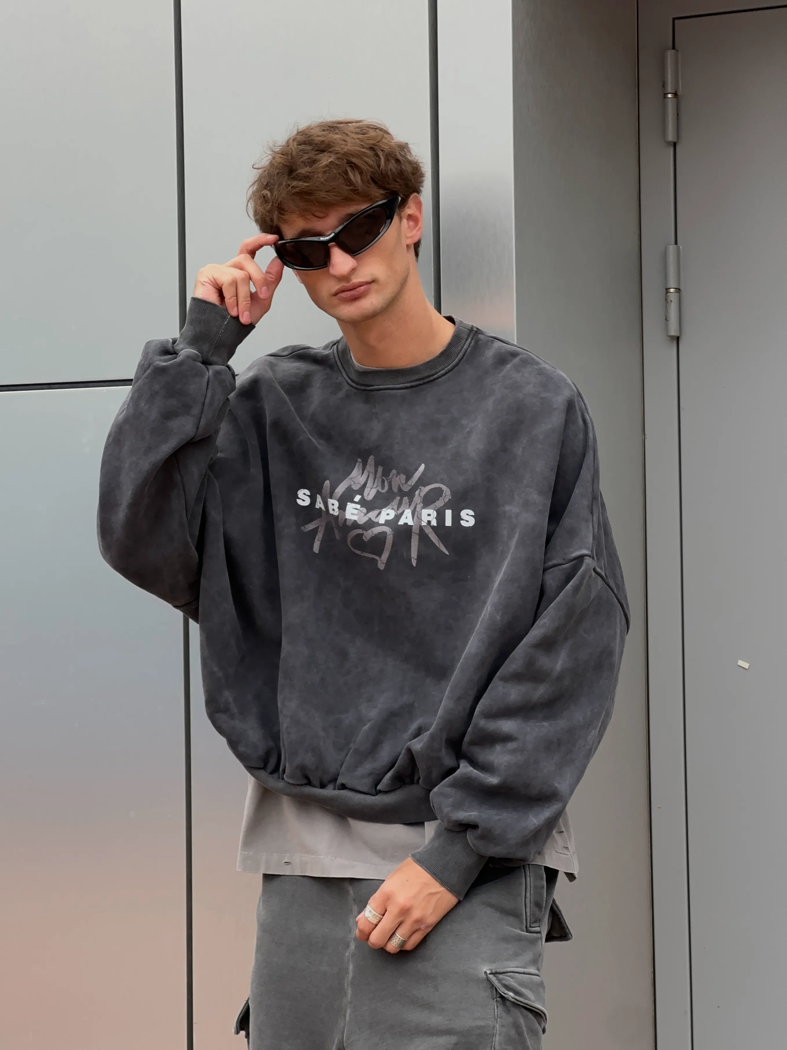 Свитшот Sabe Crewneck Mon Amour Acid Wash Dark Grey - стильный свитшот выполненный в технике кислотной стирки, которая придаёт ткани уникальный винтажный эффект и глубину тёмно-серого оттенка.